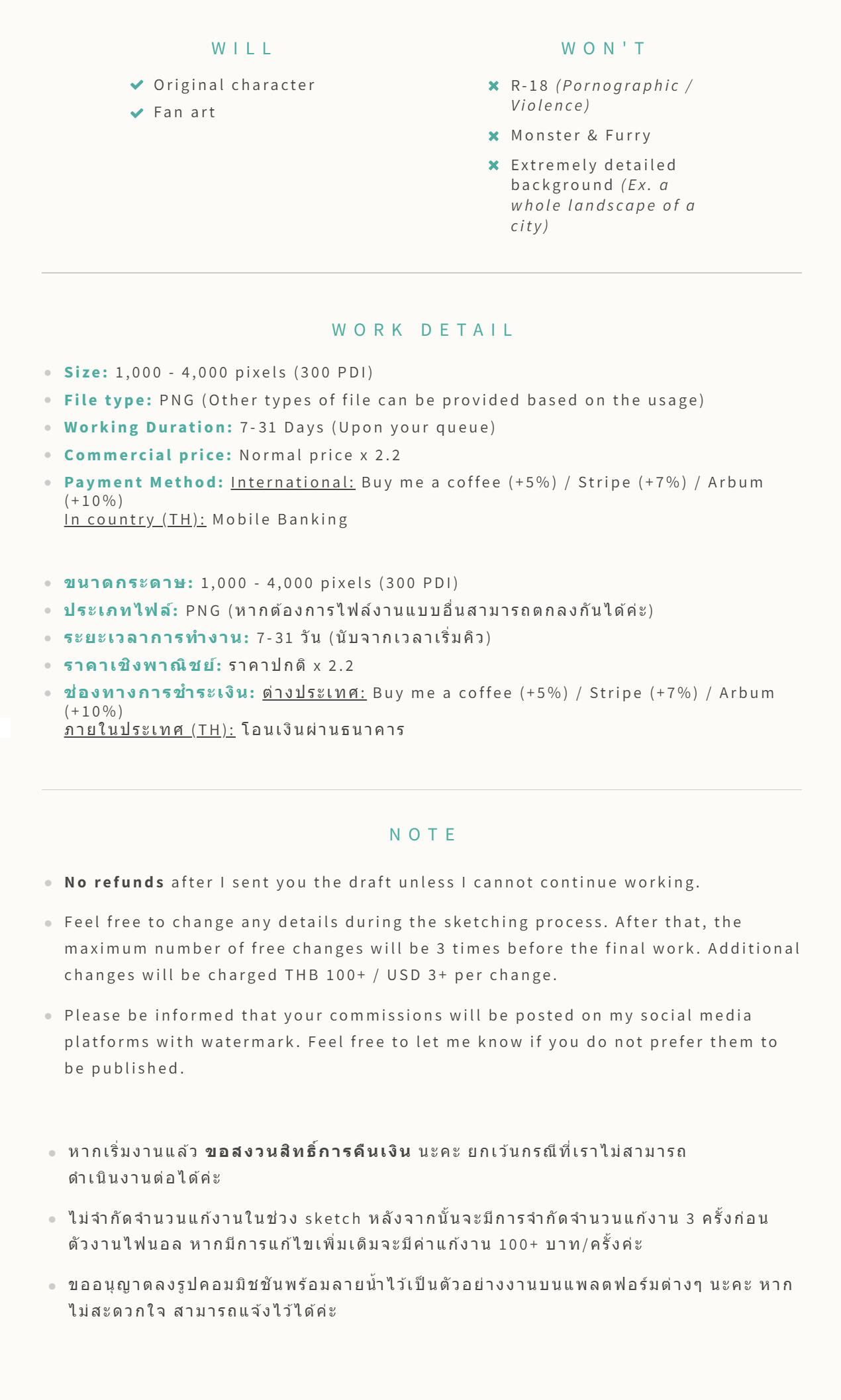 + THB 500 (USD 14) - THB 1,300 (USD 37) สำหรับพื้นหลังที่มีความละเอียด