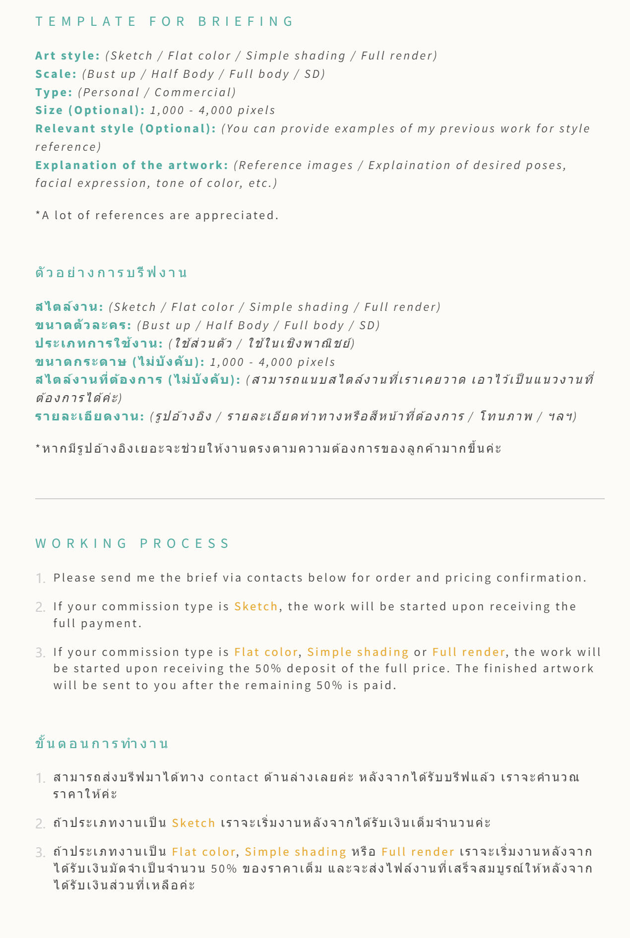 สำหรับการออกแบบตัวละครและสถานที่ (Character and environment design) จะมีการตกลงราคากันในภายหลัง ขึ้นอยู่กับรายละเอียดและการใช้งานค่ะ