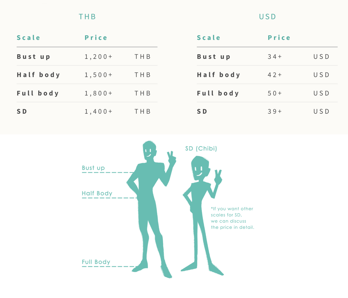 + THB 100 (USD 3) - THB 400 (USD 12) For additional props (Ex. pet, weapon, detailed special effect, etc.)
